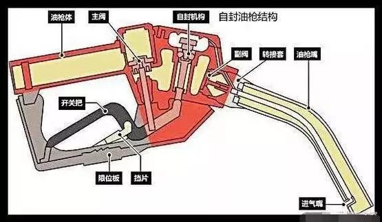 In the process of refueling, the steel ball of the self-sealing chamber sticks to the main control rod (switch), and the gasoline is pumped out by the oil valve. When the oil flows out of the oil pipe back valve, the air is driven to flow, and the suction pipe is inspirated through the suction nozzle. After the valve is opened, when the oil level reaches the suction hole during the refueling, the air is forced into the backflow valve from the self-sealing chamber. After lifting the self-sealing diaphragm, the steel ball is released from the control rod and the refueling is disconnected.